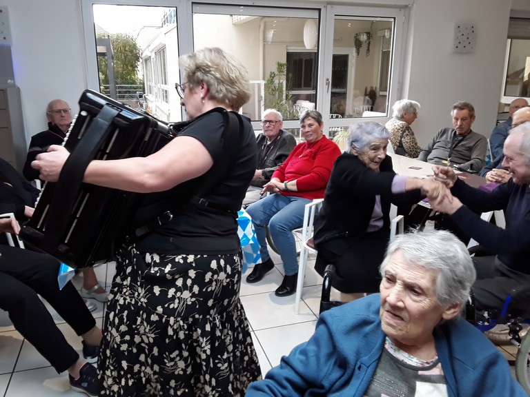 C’est sur un air d’accordéon que les résidants se sont mis à danser et à chanter toute l’après-midi. A Sausheim comme à Munich, une bonne bière et un bretzel ont donné de l’énergie aux festivaliers d’Oktoberfest !!!