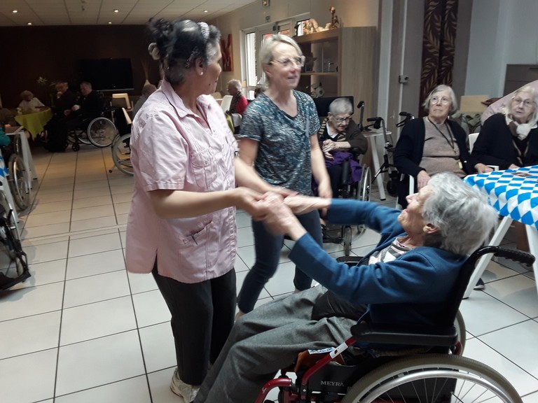 Après avoir trinqué à la nouvelle année en compagnie de Mme Volpe (directrice) résidants et professionnels ont dansé toute l’après-midi sur les airs de Jean-Yves (accordéoniste de talent).