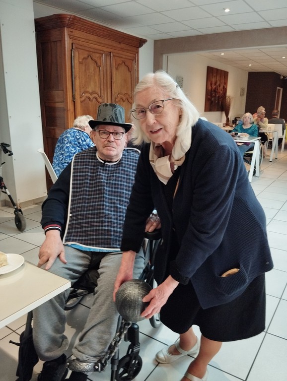 Après un repas de midi servi par d’étranges professionnels ; une princesse venue tout droit du monde de Pocahontas, une coccinelle, un papillon, .., les résidants se sont retrouvés au salon pour l’après-midi festif. Au programme, valse et bataille de confettis avant de déguster les schankalas fait le matin à l’animation pâtisserie.