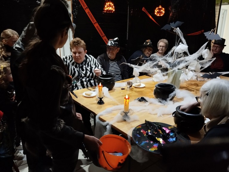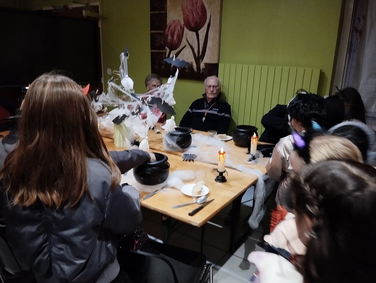 Ce 31 octobre 2025, les AS et les IDE ont été remplacés par des fantômes, des vampires et autres sorcières. Même les résidants se sont transformés en monstres maléfiques pour accueillir les enfants les plus téméraires souhaitant récupérer des bonbons à leur du diner.