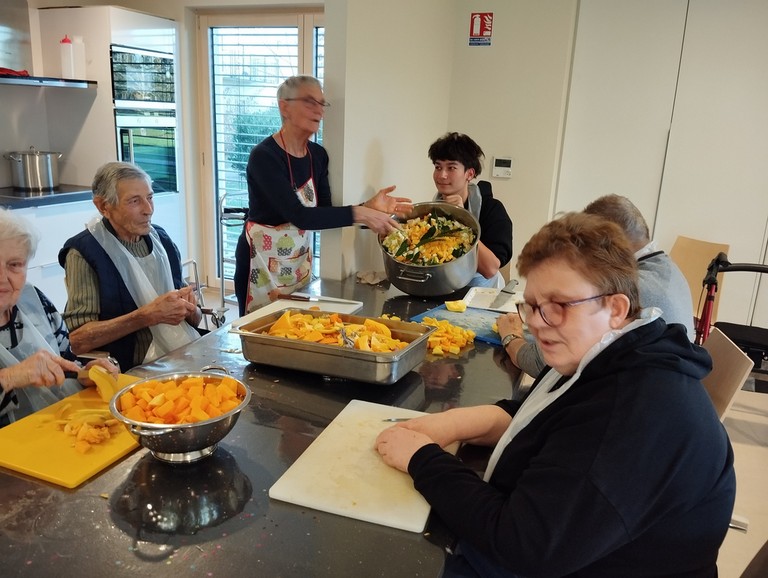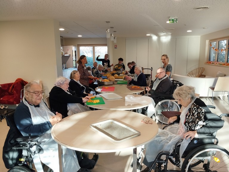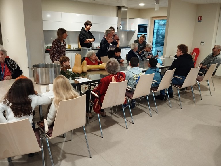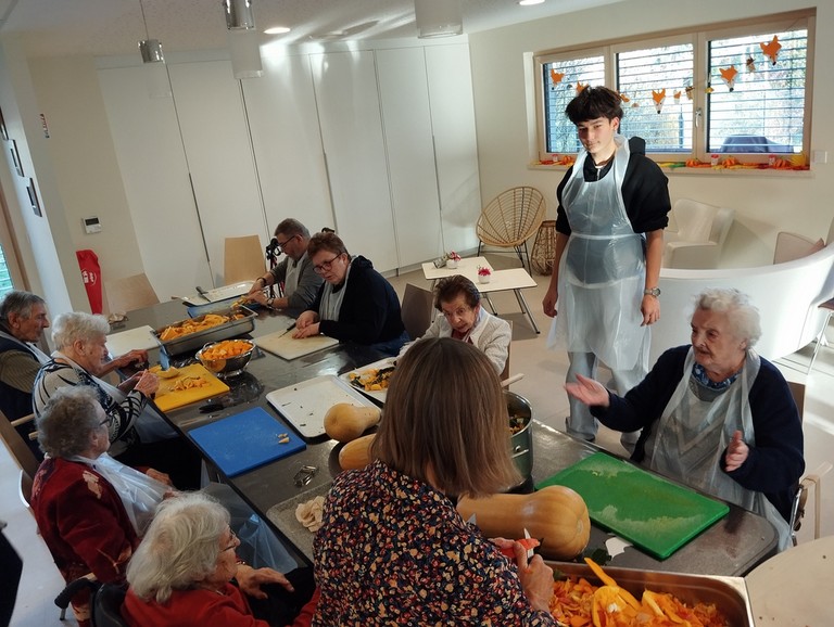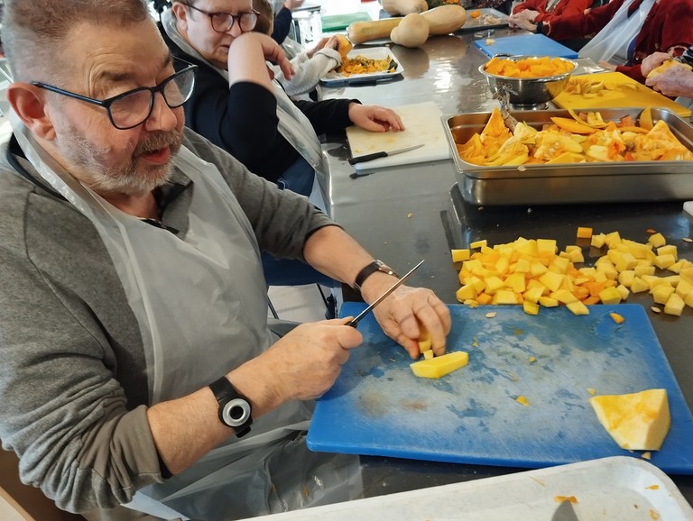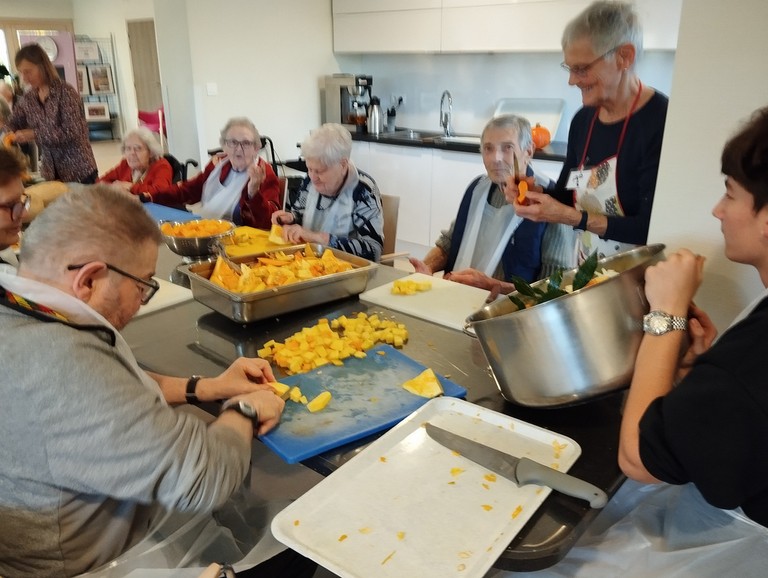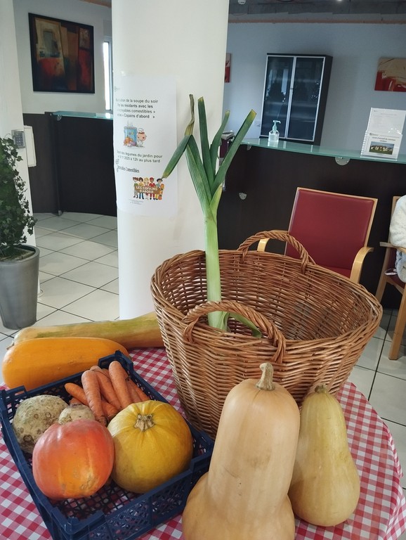 Cette année, les enfants des copains d’abords sont venus pour réaliser la soupe du soir avec les résidants ce mardi 18 novembre. Les cuisiniers du jour ont pu couper, hacher les légumes du jardin des « Incroyables comestibles ».