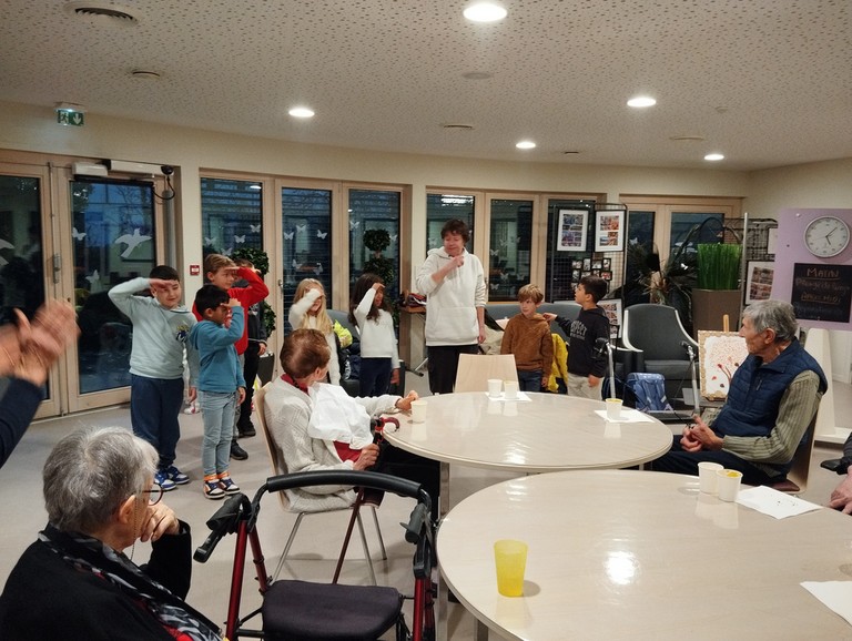 Lors de cette rencontre entre les résidants et les enfants nous avons choisi de faire un choc des générations lors d’un blind test.