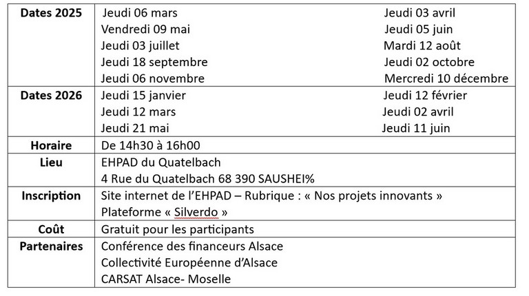 L'établissement a répondu aux appels à projets de la Conférence des financeurs afin de réaliser les projets suivants :
