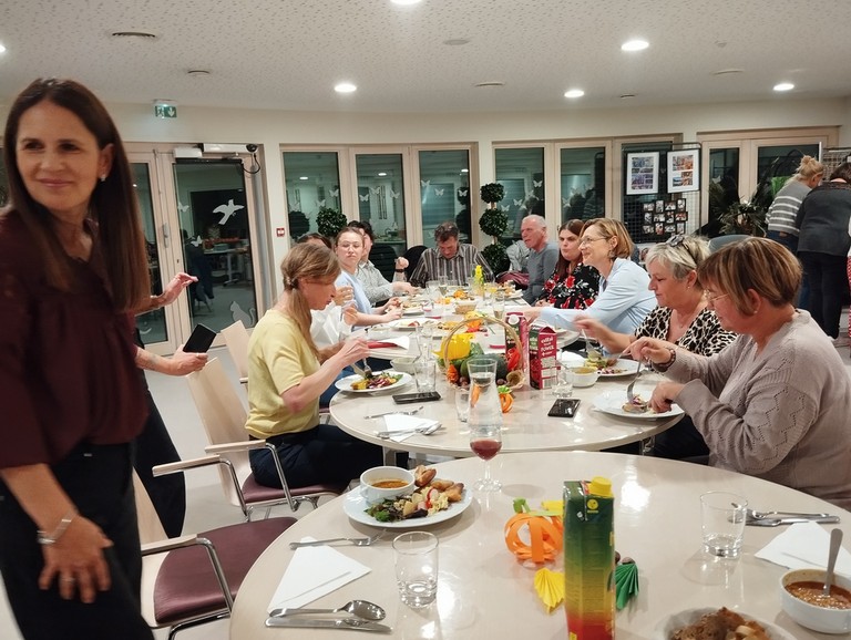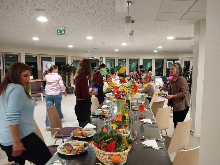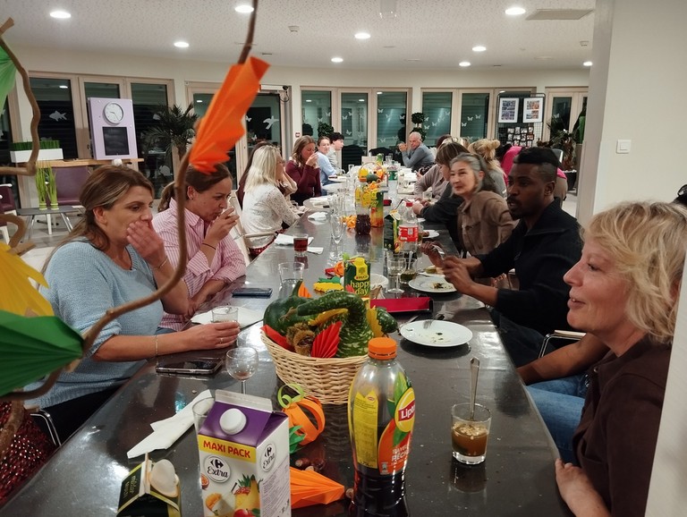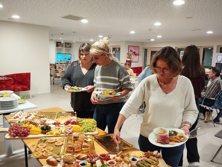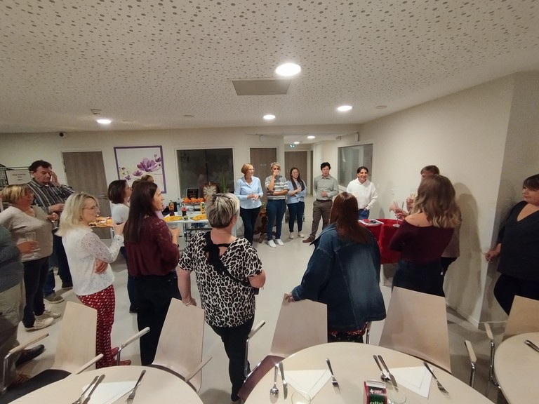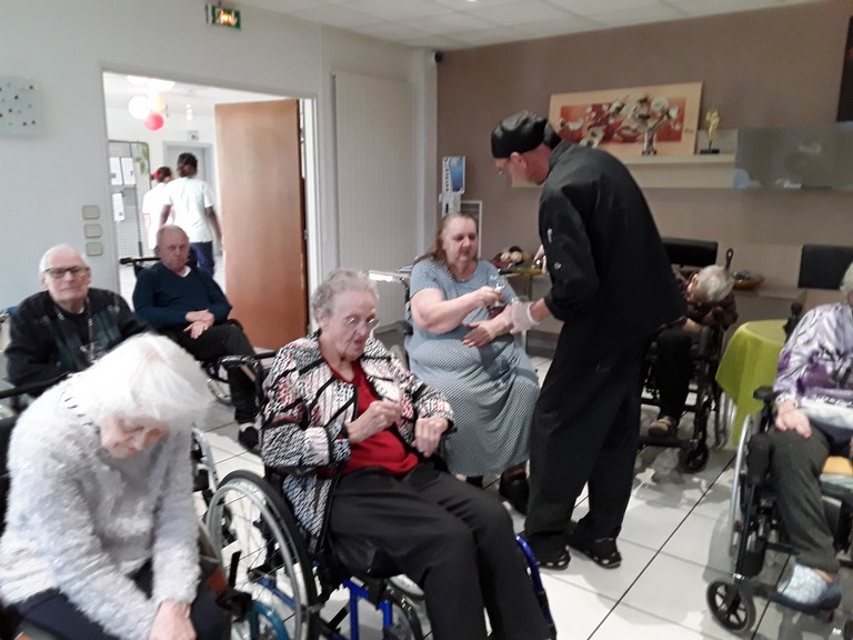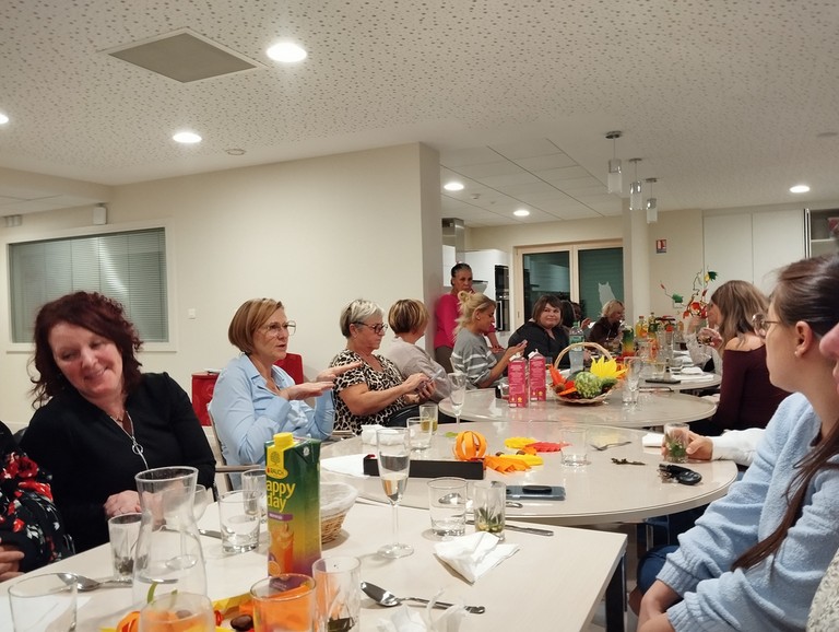 Mme Volpe, Directrice de l’établissement a tenu à organiser un repas pour rassembler l’espace d’une soirée les différentes personnes travaillant au sein de l’établissement ; qu’elles soient salariées ou non de l’EHPAD. Ainsi les soignantes, les professionnels administratifs et techniques ont pu partager un moment convivial avec les professionnels de cuisine ou du ménage.