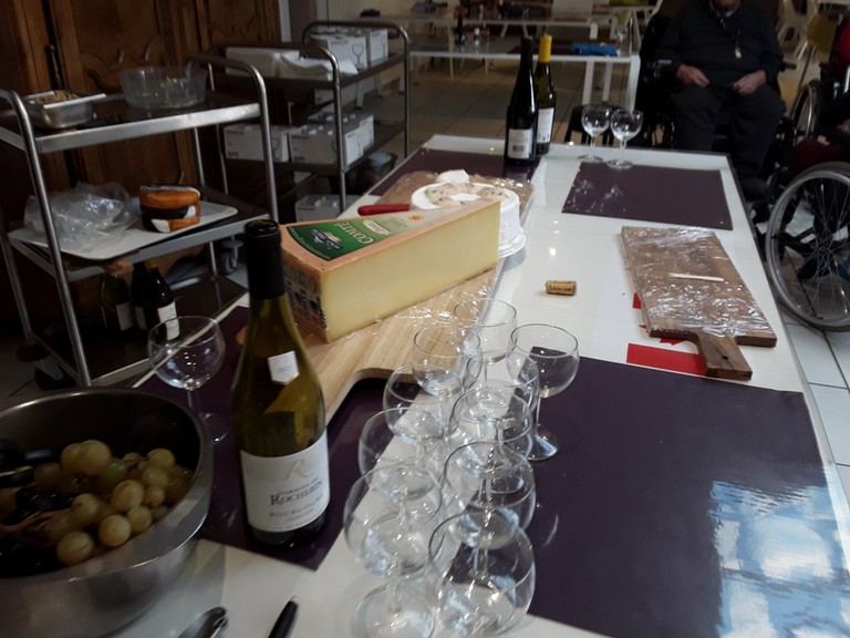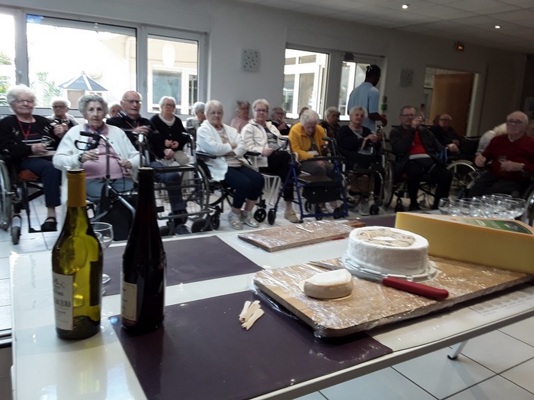 Le savez-vous ? En France, il y a presque autant de fromages que de jour de l’année. Et quoi de meilleur qu’un verre de bon vin pour accompagner un bon fromage ? C’est pourquoi le chef de cuisine a proposé aux résidants de goûter différents accords vin-fromage tantôt sucrés, tantôt boisés.