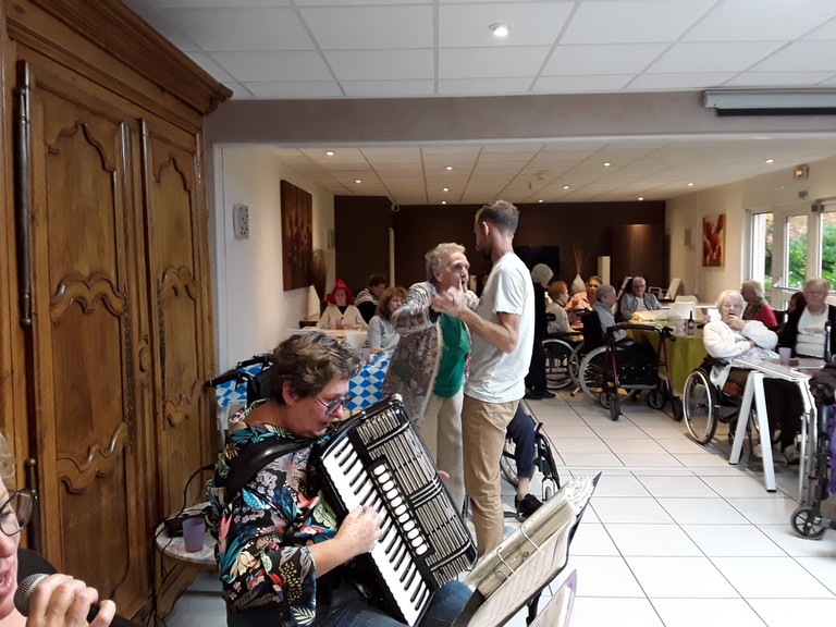 Après avoir trinqué à la nouvelle année en compagnie de Mme Volpe (directrice) résidants et professionnels ont dansé toute l’après-midi sur les airs de Jean-Yves (accordéoniste de talent).